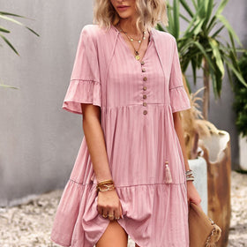 Elegantes rosa Sommerkleid – ein Must-have. Zeitlos elegant und feminin, schmeichelhafte Silhouette, sanfte rosa Farbe, perfekt für sonnige Tage.