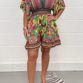 Dieser trendy Print Jumpsuit für Damen ist ein modisches Statement für einen auffälligen Look. Mit seinem lebhaften Print und modernen Schnitt ist er perfekt für Sommer, Festivals oder Streetstyle. Er kombiniert Komfort und Stil, casual mit Sneakers oder elegant mit Sandalen kombinierbar.