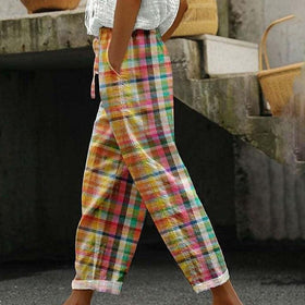 Klassischer Charme trifft modernen Komfort - die Cleda Damenhose im Vintage-Stil. Diese wunderschön gestaltete Hose mit bezauberndem Karomuster bringt Nostalgie in Ihre Garderobe.