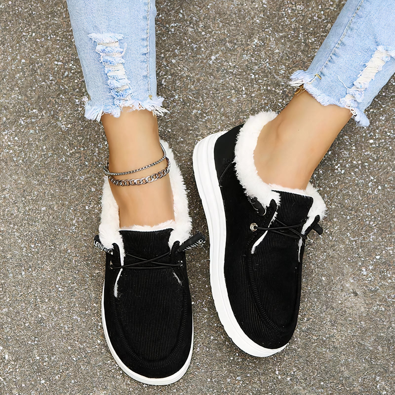 Stilvolle, warm gefütterte Winterschuhe für Frauen vereinen Funktionalität und modernen Stil. Flauschige Fütterung hält die Füße an eisigen Tagen warm. Die robuste Außensohle bietet sicheren Halt, das Design passt zu jedem Winteroutfit. Perfekt für Spaziergänge und Alltag – Komfort und Eleganz für die kalte Jahreszeit.