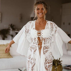 Weiß gestreiftes Strandkleid, Tunika, Pareo, Bikini Cover-up, Bademantel, Strandbekleidung von Fudus