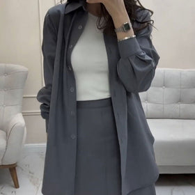 Zweiteiliger Anzug Natividad: Lockeres Hemd und langer Rock in Grau